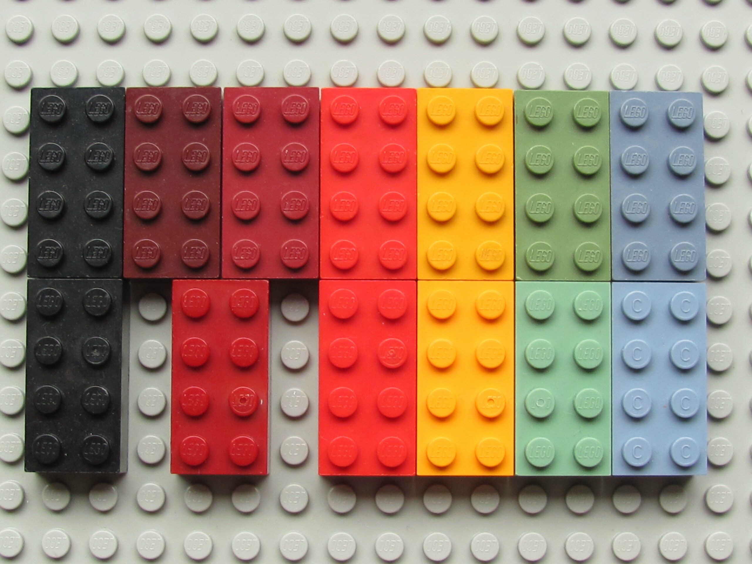Bottom row: black, dark red, red, bright light orange, sand green, sand blue