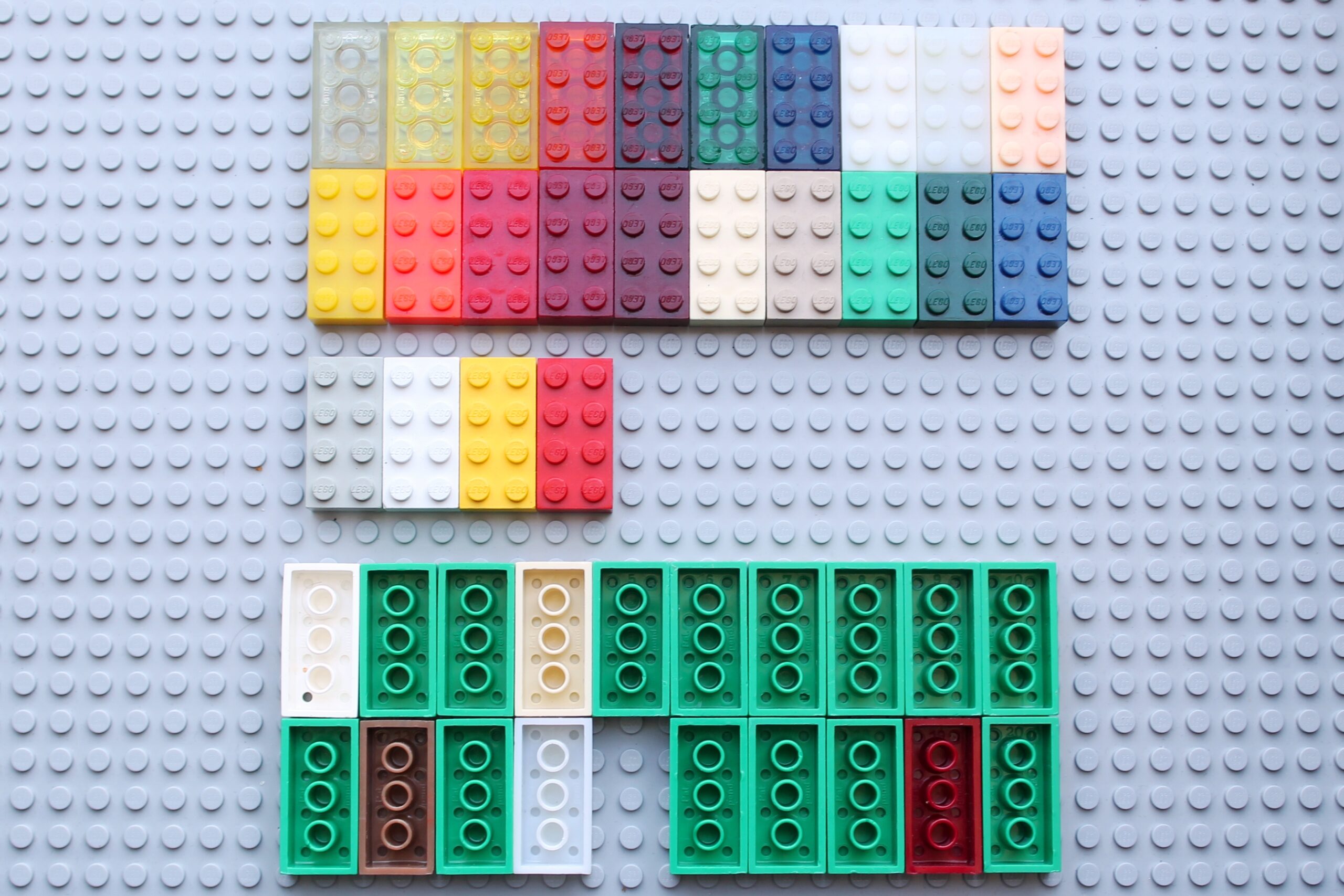 Colors known: a huge range of colors has been found, including transparent bricks with glitter.
