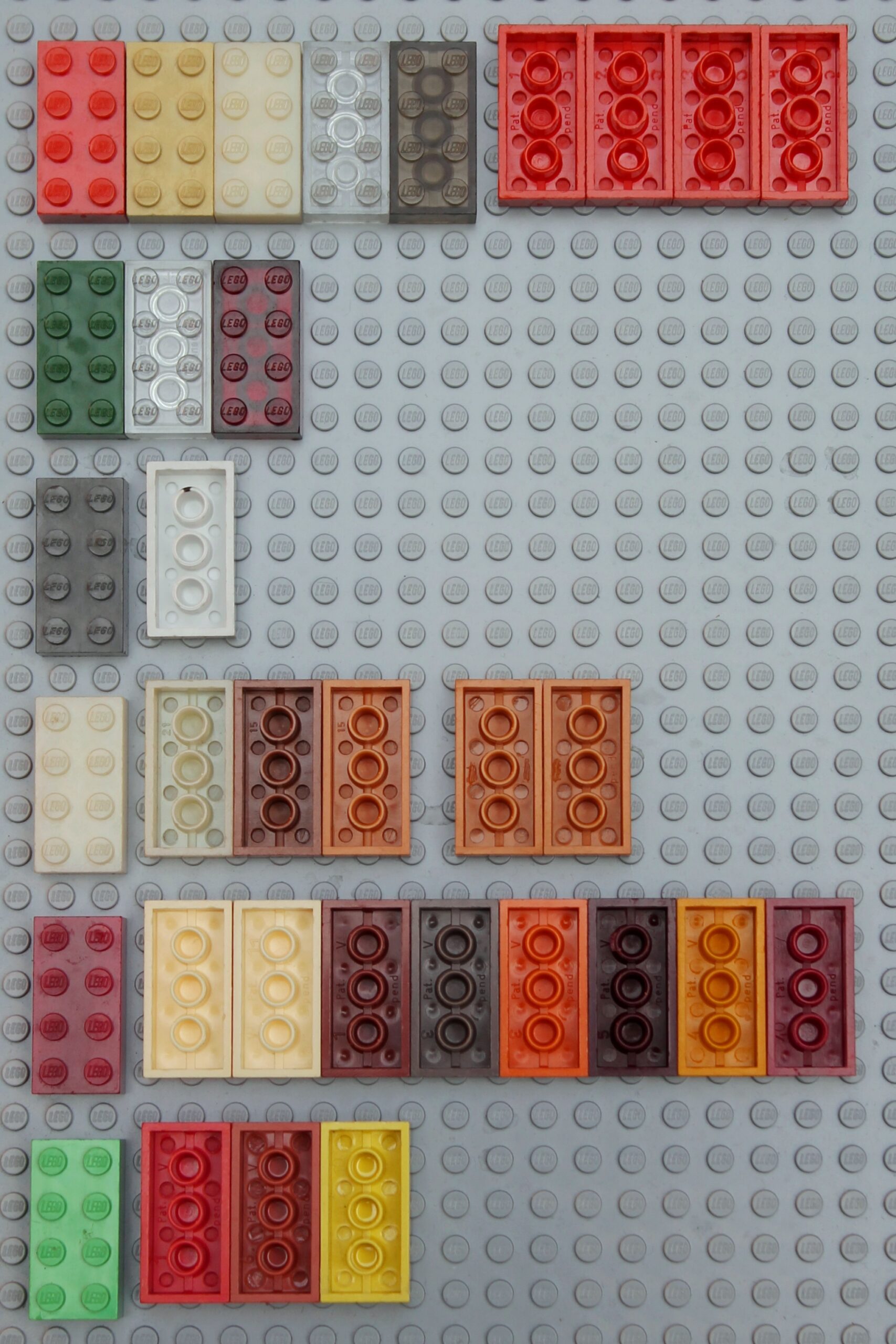 Numbers 1 to 6, 8 to 11, 13 to 16, number 40 (replaces 12) and a brick without markings (replaces 7)