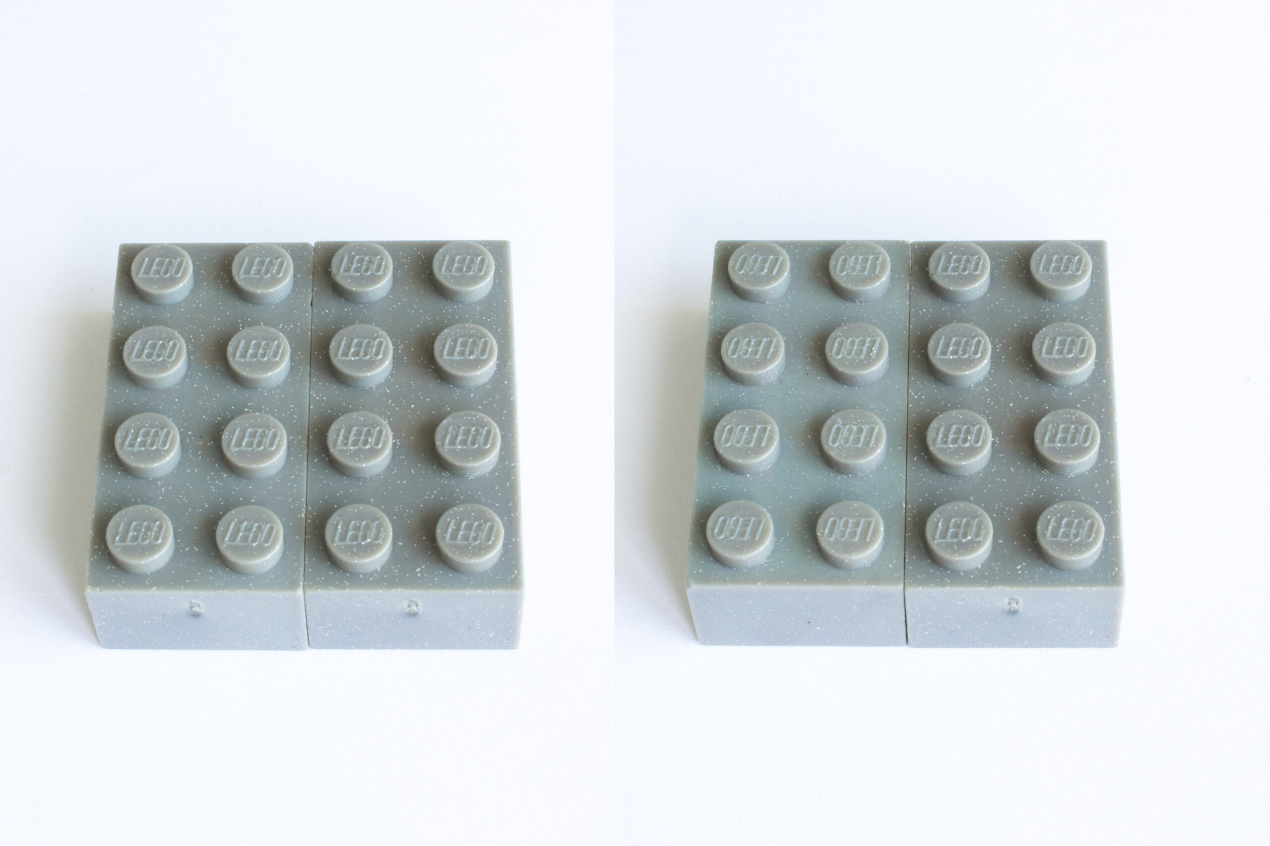 The two bricks in this photo have the same color, but the reflected color changes strongly depending on the orientation of the brick. The difference between the two photos is only that I rotated the left brick 180 degrees.