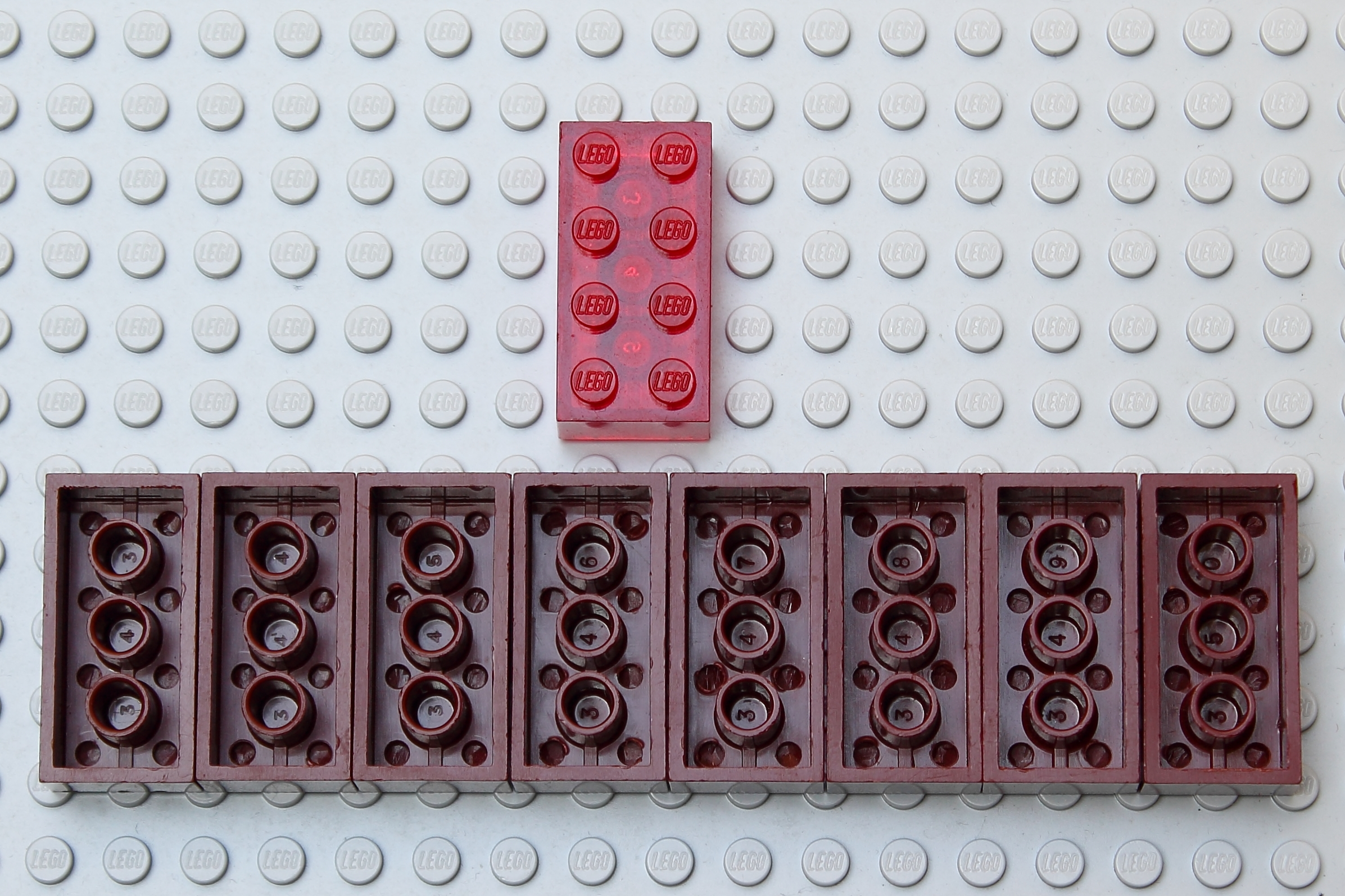 Inner ribs: On the long and short sides. Visible as a frosted line in transparent bricks.