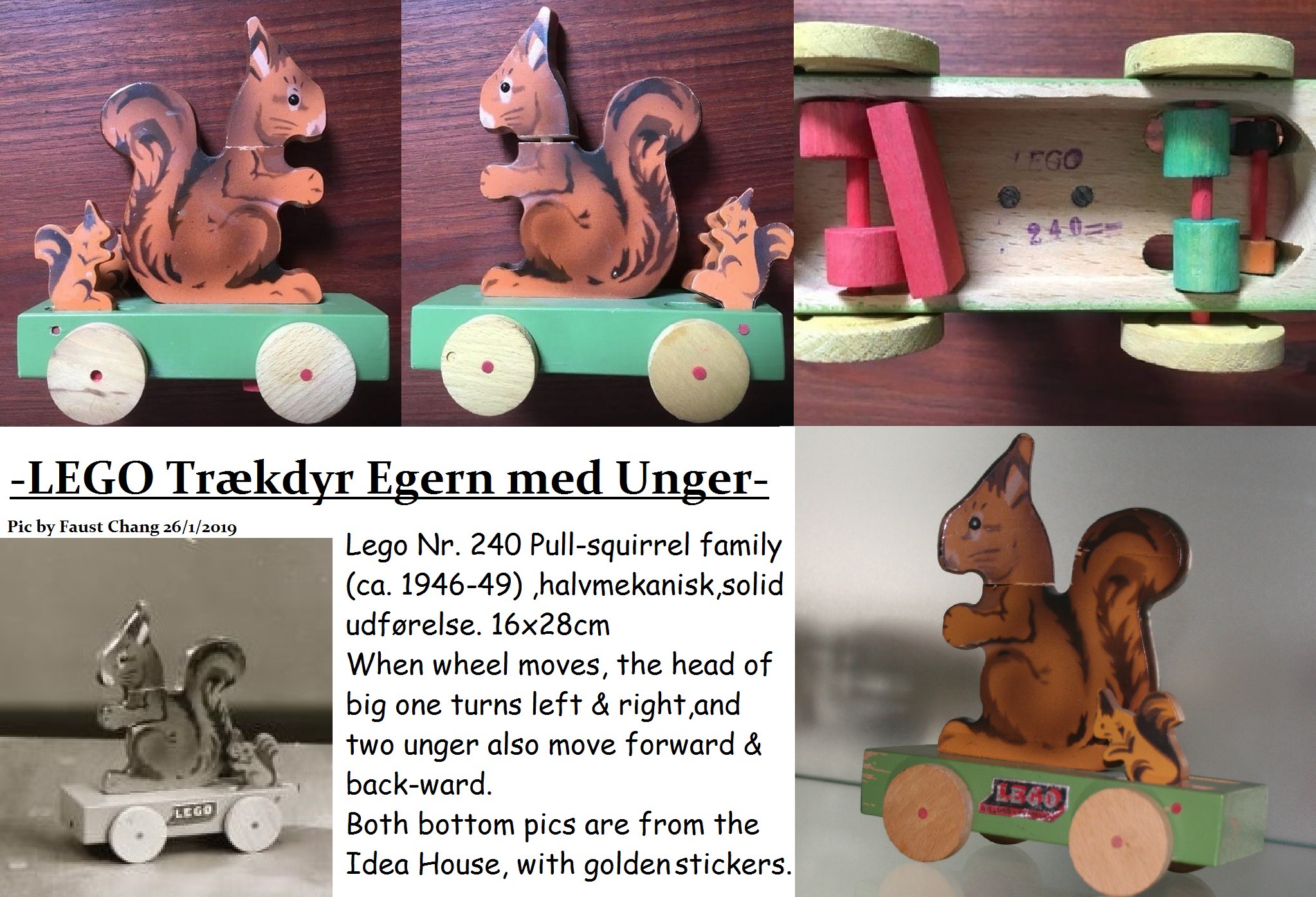 LEGO nr. 240 Pull-squirrel family (ca. 1946-49), halvmekanisk, solid udførelse. 16×28 cm.