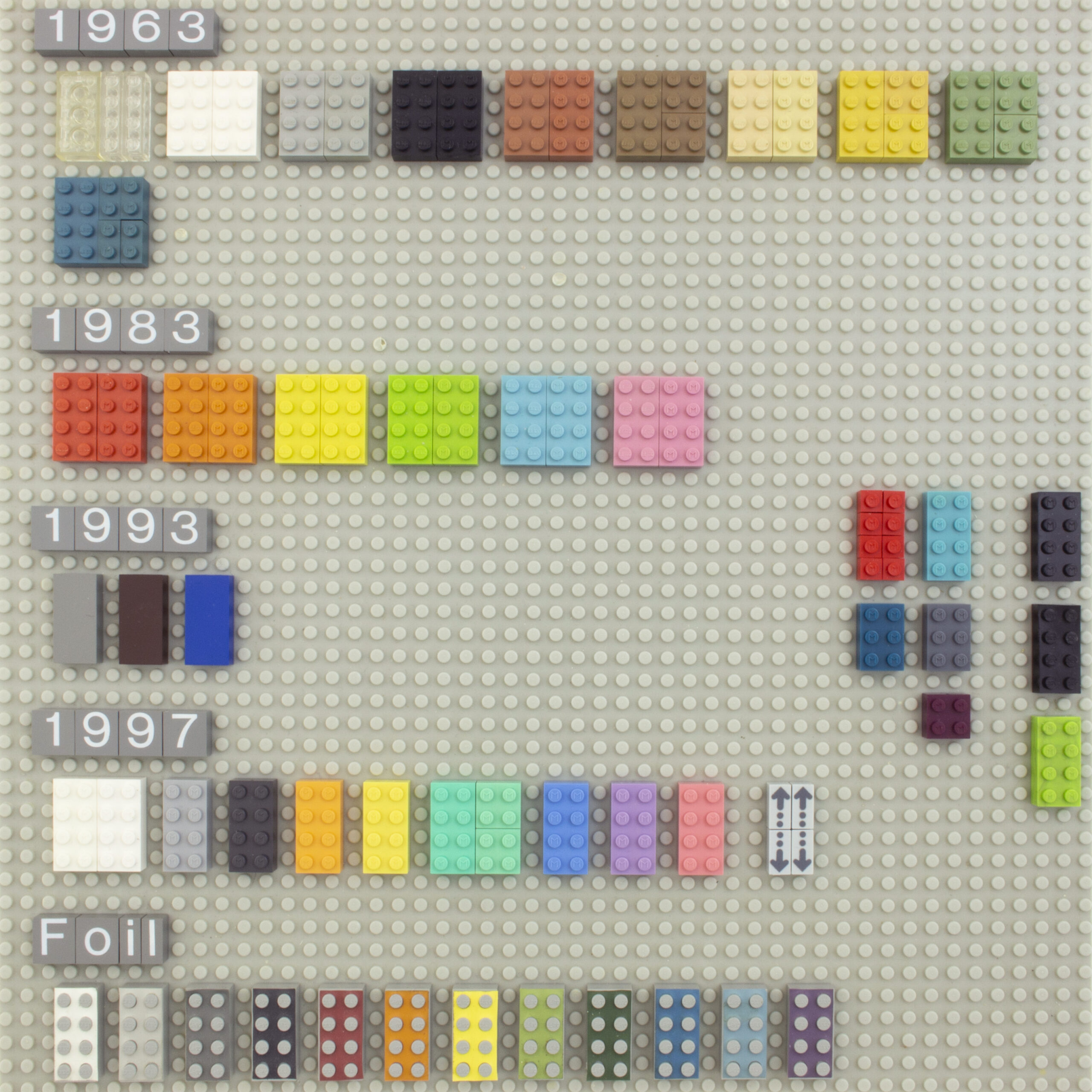 On the right are oddities: five mystery colors (including “10 ‘Strong Red'”), 2014 Black, black CA, and a marbled Pastel Green.