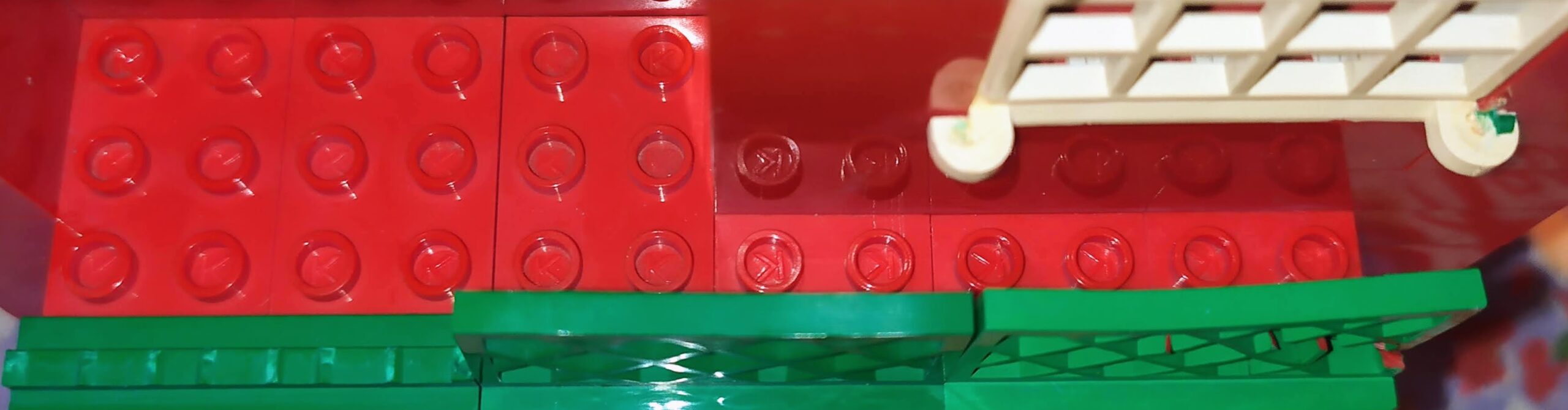 Only later, at home, I realized it looked a little bit too shiny to be Minitalia. It did look like ABS, and I quickly realized that Minitalia in ABS basically means OLO. So I checked the few visible studs (the chimney was clearly re-added later, it’s not “original”) behind the broken balcony and… bingo! The “K” inside the studs! At that point I also realized another obvious thing… the bottom white bricks, all have the “pat. pend.” pattern (as opposed to the better known “pend. pat.”) discovered by Faust last year. The few red ones for which I can check the bottom are “pend. pat.”.