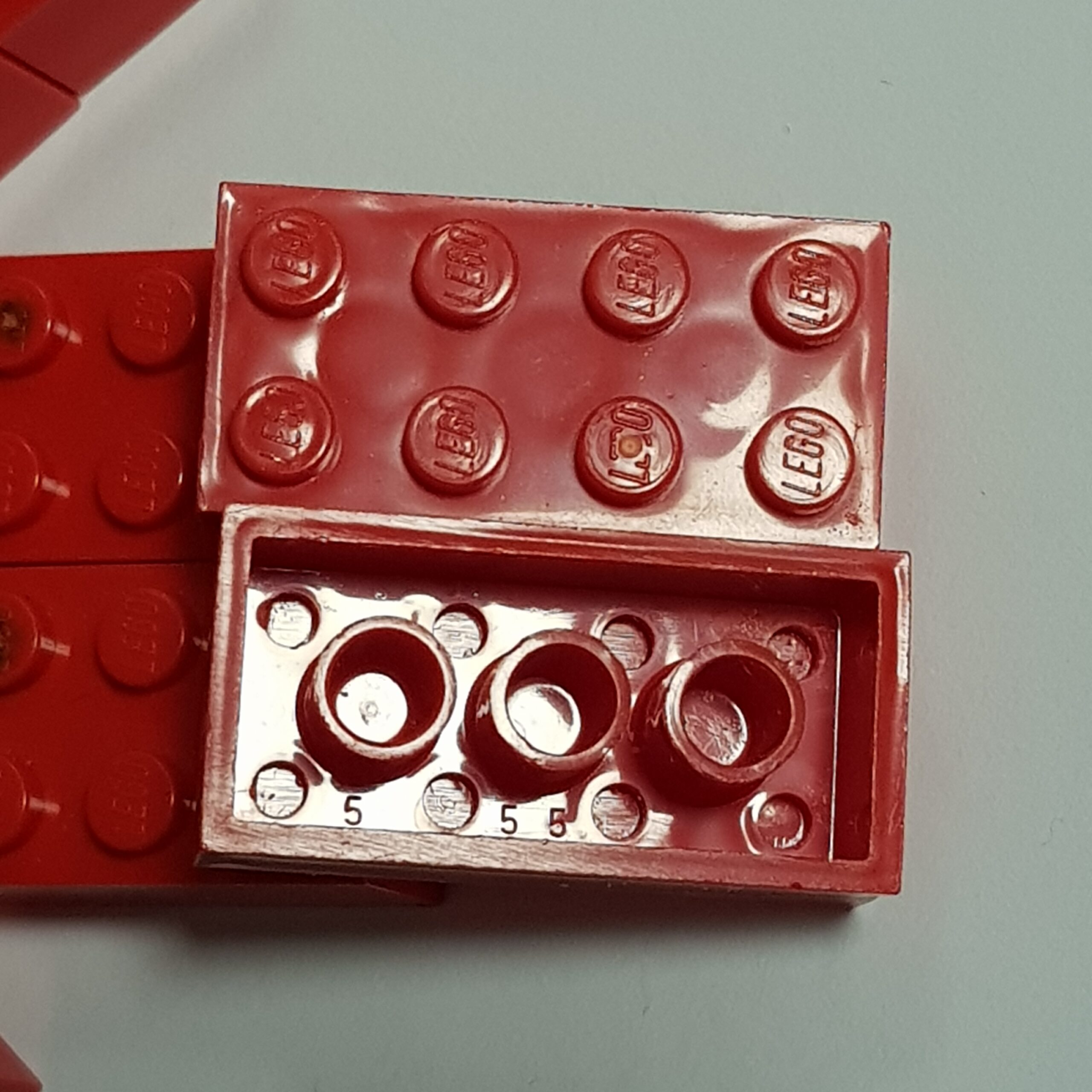 Forgot to say that I did not sort out these bricks from other normal red 2×4 bricks. Absolutely all the bricks I recieved were like this. So it must be something weird going on with the mold or plastic…